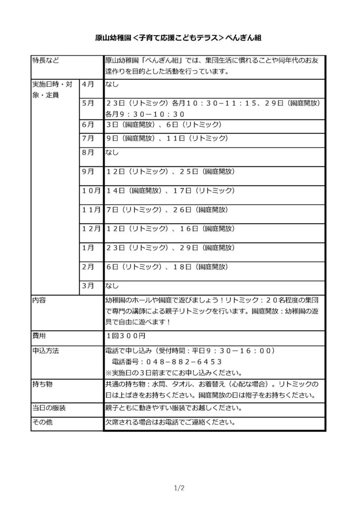 内容:親子リトミック(月1回)、園庭開放(月1回)